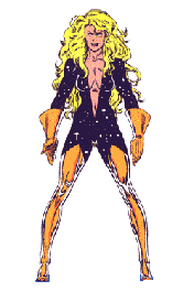 STAR-HAWK +-----------------------------------+----------------------------------------+ |VALUE CHARACTERISTIC COST BASE PTS|NAME: | | 33 Strength x1 10 23|HERO ID: ALETA_STARHAWK | | 24 Dexterity x3 10 42|PLAYER: | | 40 Constitution x2 10 60|----------------------------------------+ | 11 Body x2 10 2| PTS POWERS END| | 20 Intelligence x1 10 10| 40 Elemental Control (Cosmic Power) | | 20 Ego x2 10 20| (40),"One Who Knows" | | 20 Presence x1 10 10|54a) 24" Flight (Mutant Powers),x16 | | 20 Comeliness x1/2 10 5| Non-Combat,0 END(+1/2) 0| | 15 Physical Defens x1 7 8|64b) 19/19 Force Field (Telekinesis), | | 15 Energy Defense x1 8 7| 1/2 END(+1/4),x1 Hardened(+1/4), | | 5 Speed x10 3.4 16| Affects Desolidified(+1/2),Area | | 25 Recovery x2 15 20| Effect(+3/4),selective target 5| | 90 Endurance x1/2 80 5| 75 Multipower (Cosmic Power) (75), | | 80 Stun x1 48 32| "The giver of Light" | | Characteristics Cost: 260| 7u 10D6 Energy Blast (Telekinesis), | +-----------------------------------+ x1 Armor Piercing(+1/2) 7| |DISADVANTAGES BASE: 150+PTS| 7u 5D6 Entangle (Telekinesis), | |Vulnerability,"Drains & 10| "Force Wads",Area Effect(+1/2) 7| | Transfers (Magic)",common,x1 | 7u 5D6 Flash (Radiation),"Magnetic, | | 1/2 effect | Optic, Laser, Cosmic, | |Enraged,"Innocents Attacked", 10| Particulate, Anything",Normal | | very common,occur 11-,recover | Sight,Does Knockback(+1/4), | | 14- | Variable Special Effects(+1/4) 7| |Psychological Limitation, 20| 7u -6 Images (Light),"Solid Light | | "Aloof, distant, Cold",common, | Constructs",x64 Increased Area 7| | total | 7u 4D6 Energy Blast (Light),Area | |Psychological Limitation,"Hunts 10| Effect(+1 1/4),cone,selective | | Alien conqueror Types (Badoon, | target,Affects Desolidified | | skrull)",common,moderate | (+1/2),Double Knockback(+3/4) 7| |Dependent NPC,"Younger 25| 15m 6D6 Energy Blast (Light),Area | | Brother",incompetent,appear | Effect(+1/2),No Normal Defense | | 14- | (+1),Defense: Deflector Shields, | |Distinctive Features,"Mutant, 5| Full Missile Deflection versus 7| | No Pupils",easily concealable, | 3 Paramedic 13- | | minor | 3 PS: Archaeologist 13-,(INT | |Reputation,"No Mercy",occur 8-, 10| based) | | extreme reputation | 10 License to Kill | |Hunted,"by LEGION",as powerful, 20| 3 1 Levels: Multipower,tight group | | non-combat influence,harsh, | 20 cosmic Awareness (Cosmic Power) | | appear 11- | 12 4 Levels: blasts & flashes,tight | |Hunted,"by Fire-Wing",as 15| group | | powerful,harsh,appear 11- | 3 Acrobatics 14- | |Hunted,"Stellar Evils",less 10| 3 Breakfall 14- | | powerful,harsh,appear 11- | 3 Forensic Medicine 13- | |Guardian of the Galaxy 500| 2 KS: Star Systems | | | 2 KS: Cosmic Powers | | | 2 KS: the AfterLife | | | 2 KS: starships & spacemen | | | 1 Lang: Skrull | | | 1 Lang: French | | | 3 Lip Reading 11- | | | 3 Navigation 11- | | | 9 3 Rng Levels,all ranged attacks | | | 2 SC: Aeronautics 11- | | | 2 SC: Astrphysics | | | 3 Tracking 13- | | | 30 Life Support (Cosmic Power), | | | "Full cosmic metabolism",doesn't | | | breathe,doesn't | | | eat/sleep/excrete,safe in | | | vacuum/pressure,safe in | | | radiation,safe in heat/cold, | | | immune to disease,immune to | | | aging | | | 5 0 Extra Limbs (Cosmic Power) | | | 30 x1K Faster-than-light Travel | | | (Cosmic Power),"Warp 10" | | | 3 Absolute Time Sense | | | 3 Bump Of Direction | | | 35 16- Danger Sense,able to sense, | | | general area | | | 25 14- Find Weakness,Desc: Energy | | | Blast | | | 30 16- Universal Translator | | | 10 High Range Radio Hearing (Light) | | | 3 Mental Awareness (Light) | | | 15 Radar Sense (Light) | | | 25 Spatial Awareness (Light) | | | 30 +20 Telescopic Sense (Light), | | | Sight Group | | | 10 360 Degree Sensing (Light), | | | Unusual Sense Group | | | 15 +5 Detect (Light),"Cosmic Power, | | | Radiation, Light, EMP",make into | | | sense,Desc: Photons, Particles, | | | fields, Energy Signatures | | | 2 11- Contact: Numinus | | | 2 11- Contact: Galactus | | | 2 11- Contact: Reed Richards | | | 1 1 Favors: Raphael | | | 1 1 Favors: Nova | | Disadvantages Total : 635| 652 : Powers Total | | Experience Spent + 127| 260 + Characteristic Total | | Total Points = 912| 912 = Total Cost | +-----------------------------------+----------------------------------------+ ORIGIN: half of the former dual life-form, she's still not sure where or why exactly TACTICS: blast the enemies' leaders COSTUME: indestructible spandex PERSONALITY: aloof, calculating, yet merciful BACKGROUND NOTES: see Guardians & Avengers history