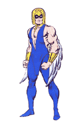 Not much background here, he lived normally in New York, and Seth gave him powers in attempting to use him as a pawn versus Thor & his friends. He tended to infight just a little with the other 2 members. %%%%%%%%%%%%%%%%%%%%%%%%%%%%%%%%%%%%%%%%%%%%%%%%%%%%%%%%%%%%%%%%%%%%%%%%%%%% EARTH FORCE MARVEL CONVERSIONS TO CHAMPIONS FROM OHOTMU 5 %%%%%%%%%%%%%%%%%%%%%%%%%%%%%%%%%%%%%%%%%%%%%%%%%%%%%%%%%%%%%%%%%%%%%%%%%%%%% Continuing my series of Marvelous Write-Ups, I present 3 minor heroes. They didn't start out heroes, they were given powers by SETH the Heliopolitan god of evil, and he saved their lives to boot, and asked that he be repaid for his favors to them by killing Grim Hogun, Thor's buddy from Asgard. He told'em a bunch of lies, and let'em know that Hogun had to die. Well they tried, but were stopped by Thor, et al. Of course they're bascially good people anyways so they were easily talked into being heroes instead of Seth's goons. They helped Thor wreak havoc on Seth's Black Citadel. %%%%%%%%%%%%%%%%%%%%%%%%%%%%%%%%%%%%%%%%%%%%%%%%%%%%%%%%%%%%%%%%%%%%%%%%%%%%% SKY-HAWK (Earth Force 2) Ell-man, aka Egyptoid