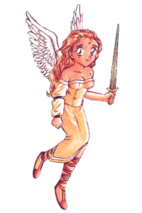 ORIGIN: extra-dimensional being of great power (planetar) TACTICS: aid to agents and servants COSTUME: simple dress PERSONALITY: intense, wise, joyful BACKGROUND NOTES: Tyrannon's ban on extra-dimensional exits trapped all kinds of creatures on Champions Earth that would normally never stick around. Serra Angel hides during the day in the body of a little old nun who works at the big abbey downtown. At night she may or may not come out and squash evil. Lately she's been content to feed power to lesser beings and let them stave off darkness. Usually she sends mental messages to heroes and normals and they say that a voice told them to show up somewhere and when they do, they're just in time to save a life, stop a crime, prevent a fire, etc. Only once has she come raging out of the church with the sword on fire and laid medieval waste on some sinner's ass, and it was against The SHOP. Not Modok, not Genocide, not the Lemurians, not vicious child-eating trolls and not vampires. What really cranked her up was the SHOP. Go figure.