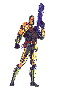 Blaire became the first black super-hero born in Alabama. He possesses a marvelous charisma and presence, with a speaking voice that is almost demonically compelling. He knows how to exploit his voice, and uses devices in his helmet and armor, which are designed along impeccable lines, to always ensure that his message is directly delivered in as convincing manner as possible. Enforcer is an impressive person, and so is his armor, and so is his helmet, and so is his gun. His PRE scores are all bought with the advantage Armor Piercing, which means that beings observing him only get half their usual PRE score to use against whatever Enforcer is suggesting. Enforcer's favorite tactic is to not fire a shot, but merely use the threat of the gun to corral thugs. "Don't make me pull this thing out, it'll be ugly" This is an improved copy of the FBI/SAT Armor. (Green & Gold, 6 rivets on the chest). This is the version he wore from around issue 99 of his comic up to when he lost control of NASA to the Feds. This is my personal favorite version, and I don't think there is enough info on the new armor yet. This is Enforcer as he appeared in the New Era. In his own comic, he's got a suit pool and has several different suits available at any time, but this version is a good representation of his standard abilities. suit = Only in Hero ID (-1/4). Not an OIF!!! The flash defense is special darkened lenses, they drop in place automatically when Enforcer is flashed, but they aren't fast enough to keep him from being momentarily blinded - so they always let the first point through. Several of his enhanced systems are not 'On by default', so he won't do an IR scan unless he has some reason to do so. Assume that his normal vision does not work fully when he is scanning other parts of the spectrum. Blaire is a rare breed, someone who wanted to be a super-hero and is also psychologically stable enough to handle the responsibility and not abuse the power. With his charisma, the only thing that prevents him from being leader of the JLA, or leader of all heroes in the Southeast, is his secret ID. If he were to give up his day job and "go hero" full time he could run the whole paranormal community, be commander of S.A.T. or whatever. But he chooses to try and keep his "real" life, and is very protective of his non-hero ID time.