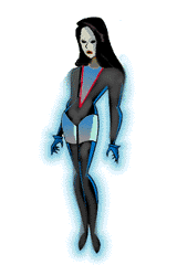 NIGHT-SHEEN +-----------------------------------+----------------------------------------+ |VALUE CHARACTERISTIC COST BASE PTS|NAME: Claire Karsten | | 14 Strength x1 10 4|HERO ID: Night-Sheen | | 20 Dexterity x3 10 30|PLAYER: | | 40 Constitution x2 10 60|----------------------------------------+ | 10 Body x2 10 0| PTS POWERS END| | 13 Intelligence x1 10 3| 3 Ultrasonic Hearing | | 13 Ego x2 10 6| 6 +3 Enhanced Perception,Normal | | 20 Presence x1 10 10| Hearing | | 24 Comeliness x1/2 10 7| 9 +6 Telescopic Sense,Sight Group | | 20 Physical Defens x1 3 17| 3 Acrobatics 13- | | 10 Energy Defense x1 8 2| 3 Breakfall 13- | | 5 Speed x10 3.0 20| 17 5 Levels: DCV only,related | | 12 Recovery x2 11 2| group,Visible(-1/4),only applies | | 84 Endurance x1/2 80 2| to DCV(-1/4) | | 39 Stun x1 37 2| 3 Computer Programming 12- | | Characteristics Cost: 165| 3 Security Systems 12- | +-----------------------------------+ 2 11- Contact: Captain Cuba | |DISADVANTAGES BASE: 150+PTS| 1 Base: Miami Enclave (5pt) | |Psychological Limitation,"CVK", 20| 3 12- Combat Sense | | common,total | 19 15- Danger Sense,able to sense, | |Psychological Limitation,"Fear 15| immediate vicinity,Costs END | | for Parents & Secret ID | (-1/2) 3| | exposure",common,strong | 5 Defense Maneuver | |Psychological Limitation, 15| 24 16/8 Armor,OIF(-1/2) | | "Monosyllabic Adolescent", | 15 25% Damage Reduction (PD), | | common,strong | resistant | |Distinctive Features,"Sultry 15| 15 25% Damage Reduction (ED), | | Beautiful Voice",concealable, | resistant | | major | 5 Infrared Vision | |Hunted,"Lemurians",more 20| 3 Radio Transmit/Receive,OIF(-1/2) | | powerful,harsh,appear 11- | 25 Spatial Awareness (Mutant | |Hunted,"LEGION",more powerful, 20| Powers) | | non-combat influence,limited | 18 28/14 Force Field (Mutant Powers), | | area,harsh,appear 11- | 0 END(+1/2) 0| |Dependent NPC,"Parents are 5| 15 15 Power Defense (Mutant | | retired heroes",as powerful, | Powers),"Slipperiness Field" | | useful skills,appear 14- | 23 13D6 Dispel (Mutant Powers), | |Reputation,"Super-pain",occur 10| "gets rid of entangles on self | | 11- | only",only when hit by grab or | |Rivalry,"She-Rahna",both,in 15| by an entangle(-1 1/2),No Range | | superior position | (-1/2),Damage Shield(+1/2), | |Dependence,"3 square meals per 25| Trigger(+1/4) 7| | day",uncommon,effect is | 12 7 OCV Missile Deflection (Mutant | | instant,3D6 | Powers),deflect bullets, | |Physical Limitation,"slippery 5| Gestures(-1/4) | | skin",infrequently,slightly | 13 Invisibility,"shadows & greys", | |Distinctive Features,"shimmery 10| Sight Group,only at night(-3/4), | | sheen to eyes, hair, nails", | Requires a Skill Roll(-1/2) 3| | concealable,minor | 3 Stealth 13- | |Vulnerability,"acid",common,x1 10| 10 15" Knockback Resistance | | 1/2 effect | | |Teen-Aged girl 5| | | | | | | | | Disadvantages Total : 190| 238 : Powers Total | | Experience Spent + 73| 155 + Characteristic Total | | Total Points = 416| 473 = Total Cost | +-----------------------------------+----------------------------------------+ ORIGIN: child of a meta-human and a mutant father TACTICS: direct confrontation or deception COSTUME: "reed"-suit, + visible personal force field PERSONALITY: coquettish BACKGROUND NOTES: "Claire can't be pinned down by anything", the boys always joked in junior high. they didn't know how right they were. Her parents had been mutant costumed crime-fighters in the 70's, but they had quit, and secretly hoped their daughter could be normal. but of course when adolescence hits, genes do screwy stuff, and at least Claire didn't pop out with horns or plasma-bolts or anything. All her powers are defensive or sensory in nature, and Captain Cuba exploits her in this area. She'll walk right into combat and draw fire off other team members, or she'll sneak around behind a villain team and start grabbing focuses. It seems to work so far, but she's careful: she can't take down anyone bigger than her, but she sure can irritate the living shit out of them, and she knows it.